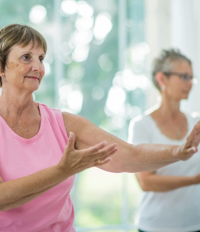 Seated exercises, music, and dance sessions to promote mobility and wellbeing.